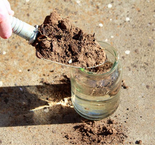 - Возьмите стакан земли с вашего участка. Положите несколько ложек земли в две разные тары.