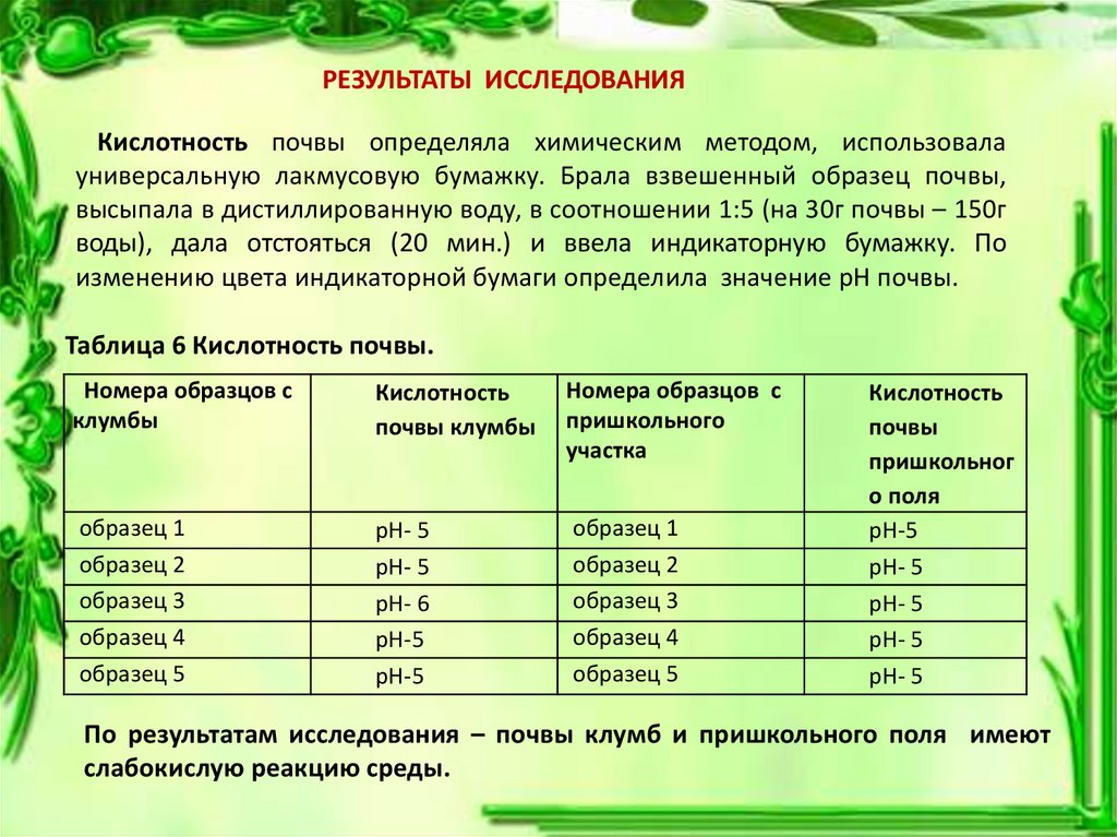 Также важно знать, как используемая вами почвенная лаборатория определяет pH почвы. Это связано с тем, что для сравнения результатов требуется та же методология измерения pH, прежде всего количества воды, смешанной с почвой.В лабораториях на западе США используются три распространенных метода определения pH почвы: насыщенная паста, соотношение почвы и воды 1: 1 и 1: 2. Было показано, что pH почвы немного увеличивается для кислых почв по мере увеличения отношения почвы к воде. PH почвы насыщенной пастой будет немного ниже 1: 1, что будет немного ниже соотношения почва-вода 1: 2.