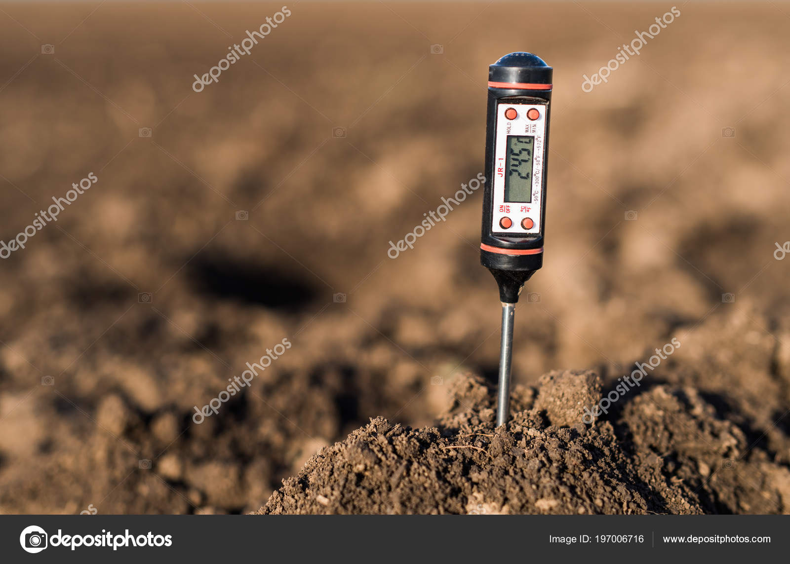 - Введите в грунт зонд. Убедитесь что зонд чистый и откалиброванный (для более четких показателей). Вытрите зонд салфеткой или чистой тканью и введите его в вырытую ямку.