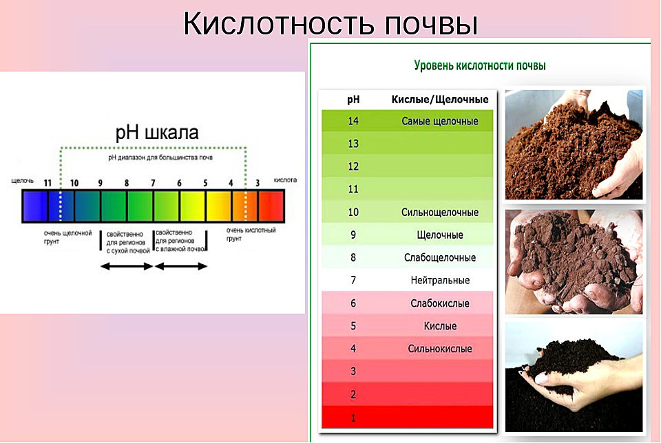 Также время года или сезона, когда вы определяете pH почвы, влияет на результат.Самый высокий уровень pH почвы измеряется в конце зимы и ранней весной, до внесения удобрений. Также pH высок в периоды повышенной микробной активности и в более сухой почве. Самый низкий pH почвы (самая высокая кислотность) наблюдается к западу от Каскадов ближе к концу вегетационного периода, но до начала зимних дождей. В Восточном Орегоне самый низкий pH почвы обычно наблюдается после удобрения весной и в начале лета на орошаемых полях. В более песчаных почвах от весны до осени pH почвы может измениться более чем на одну единицу.Обычный диапазон сезонного изменения pH весной на 0,3–0,5 единицы выше, чем во время вегетационного периода. Сезонное изменение pH почвы к западу от Каскадов связано с циклами увлажнения и высыхания. PH почвы снижается в конце весны и летом по мере увеличения содержания соли в почве.