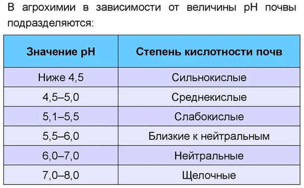 Растения нуждаются в определенной кислотности почвы. Одним культурам подходит слабокислая почва, другие лучше растут в нейтральной, третьи отдают предпочтение слабощелочной среде. Например, голубика, брусника, клюква растет исключительно на кислой почве, боярышник хорошо родит на щелочных почвах.