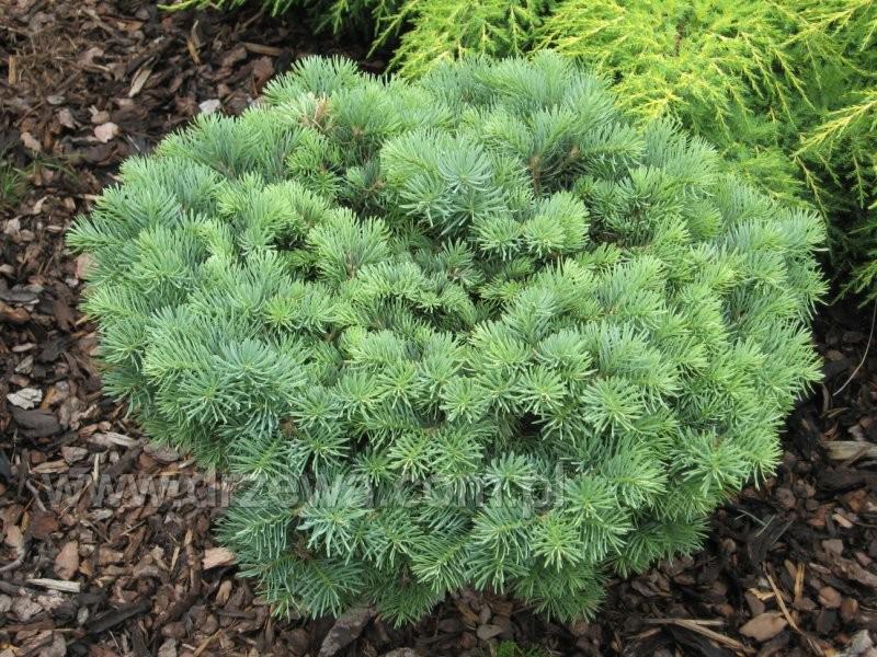 Это карликовое растение свойствами и внешне очень похоже на Голубой сапфир. Крона обладает эффектной подушковидной формой. Мягкие тоненькие одноцветные хвоинки сизого окраса имеют длину около 20 мм. Существуют и эффектные штамбовые формы.