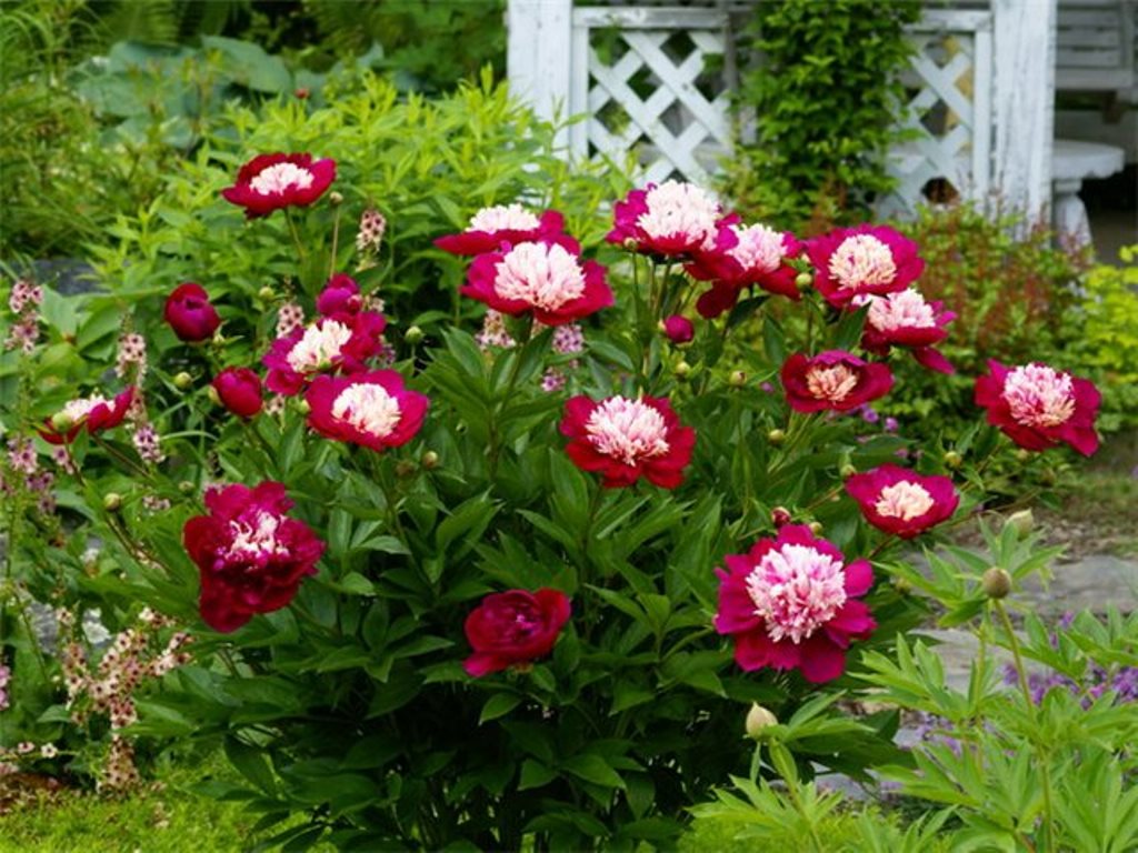 Расстояние между пионами – 1,3-1,8 м, между ними могут расти другие небольшие растения.