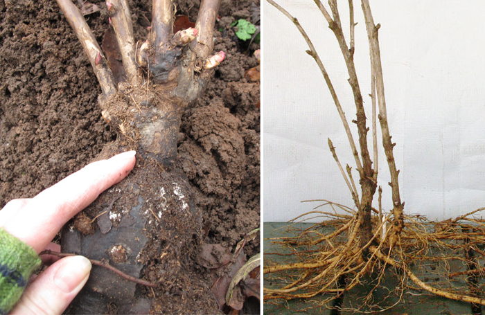 - Глубина посадки. Корневую шейку располагают в почве, чтобы почки возобновления были на уровне поверхности грунта. Привитые экземпляры сажают, чтобы место прививки было на 9-14 см ниже поверхности грунта.