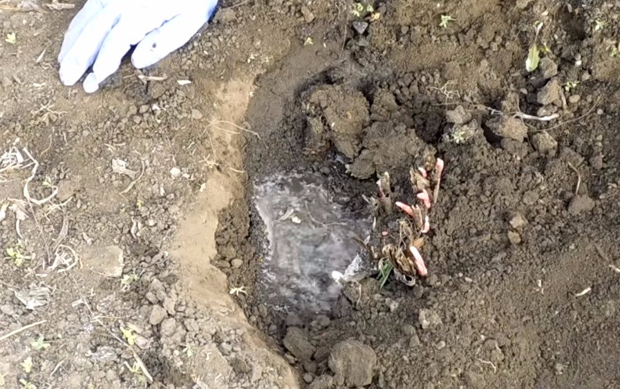 - Перед посадкой такого запоздалого посадочного материала сначала снимают укрытие с почвы, готовят ямку.