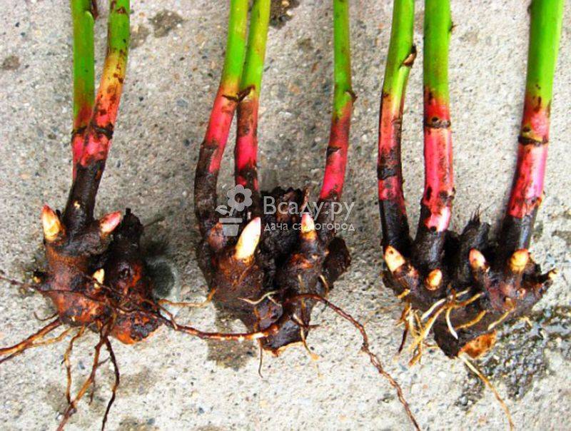 - При покупке деленок весной нужно внимательно осмотреть их и прощупать, нет ли мягких фрагментов — гнилей на корневище. До посадки пион допустимо хранить в холодильнике не больше 2х недель, после корневище начинает загнивать.