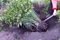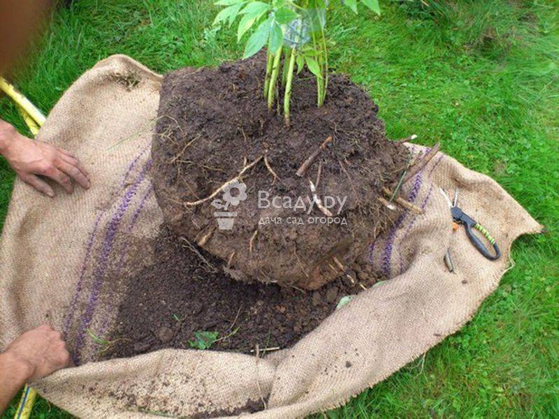- Стараются выкопать куст с комом земли, отступив от основания не менее, чем на 0,5 м, если растение большое.