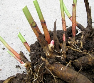 Первым делом старые подвяленные кусты нужно поделить на части. В каждой деленке должно быть 2 — 3 молодых корня и около 5 почек. Если их окажется меньше, растение зацветет не раньше, чем через 3 года. Если оставить больше почек, пион зацветет уже будущей весной, но это тоже плохо: корней еще мало, и им не хватит сил обеспечить куст необходимыми питательными веществами — и он быстро состарится.