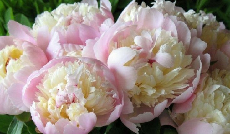 Цветки ‘Cora Louise’ открытые быстро меняется на белый. Но темно-розовый блик у основания лепестков остается, окружая желтые тычинки и розово-зеленовато-желтое рыльце. Этот пион представляет собой перекрестный сорт с цветками шириной 8 дюймов на растениях высотой 2½ фута и шириной 3 фута. Цветы распускаются в начале июня. 9Цветки пиона 0003 ‘Bowl of Cream’ настолько декоративны, что сразу вспоминаются свадебные букеты.