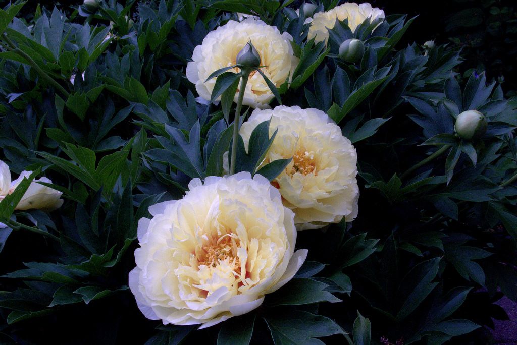 По нашему опыту, большинство японских древовидных пионов цветут в середине сезона, цветут после наших китайских древовидных пионов, но раньше гибридов лютеи.