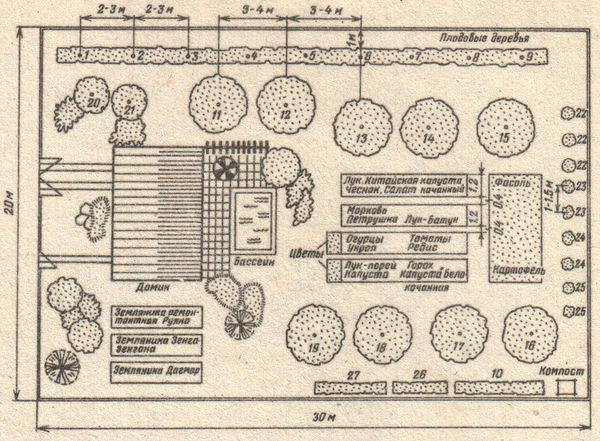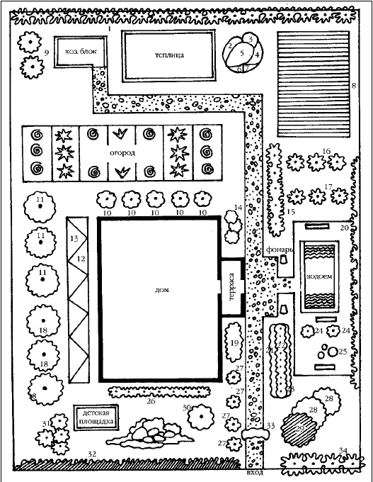 Планировка участка с садом, огородом, теплицей и ягодником