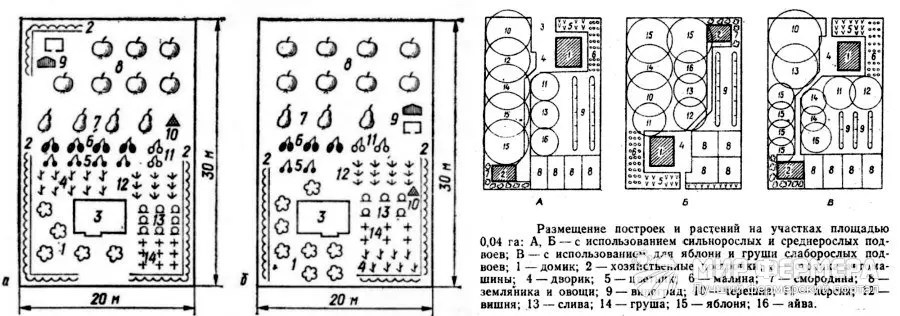 Если позволяет природная зона, можно посадить по 1 дереву абрикоса, черешни, персика. Саженцы плодовых культур целесообразно подбирать на низких и среднерослых подвоях, чтобы между деревьями оставлять по 3-3,5 м.