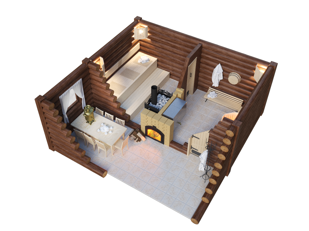 3D проект финской бани с планировкой