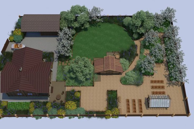 варианты и планировка участка с домом, баней и гаражом