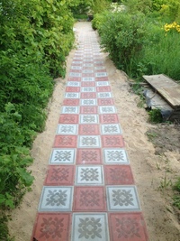 ΠΠ· ΠΏΠ»ΠΈΡΠΊΠΈ Π²ΡΠΊΠ»Π°Π΄ΡΠ²Π°ΡΡ Π½Π΅ ΡΠΎΠ»ΡΠΊΠΎ Π΄ΠΎΡΠΎΠΆΠΊΠΈ Π²Π½ΡΡΡΠΈ ΡΠ°Π΄Π°, Π½ΠΎ ΡΠ°ΠΊΠΆΠ΅ ΠΈ ΠΎΡΠΌΠΎΡΡΠΊΠΈ Π²ΠΎΠΊΡΡΠ³ ΡΠ°ΠΌΠΎΠ³ΠΎ Π΄ΠΎΠΌΠ°. Π§Π°ΡΠ΅ Π²ΡΠ΅Π³ΠΎ ΠΈΡ Π΄Π΅Π»Π°ΡΡ ΠΈΠ· ΡΠΎΠΉ ΠΆΠ΅ ΠΏΠ»ΠΈΡΠΊΠΈ, ΠΈΠ· ΠΊΠΎΡΠΎΡΠΎΠΉ Π²ΡΠ»ΠΎΠΆΠ΅Π½Ρ ΡΠ°Π΄ΠΎΠ²ΡΠ΅ ΡΡΠΎΠΏΠΈΠ½ΠΊΠΈ.