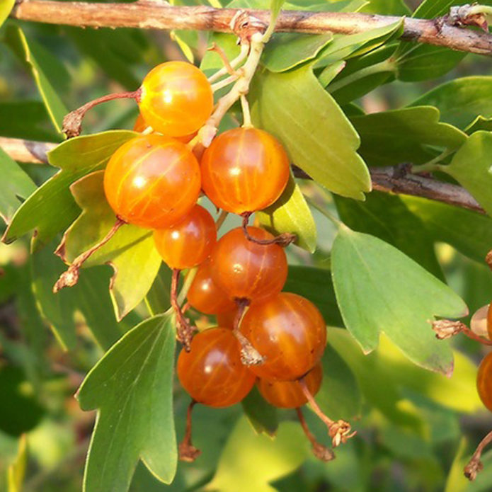 Гибрид со свойствами крыжовника и черной смородины, лишен шипов, отличается не дружным созреванием крупных ягод.