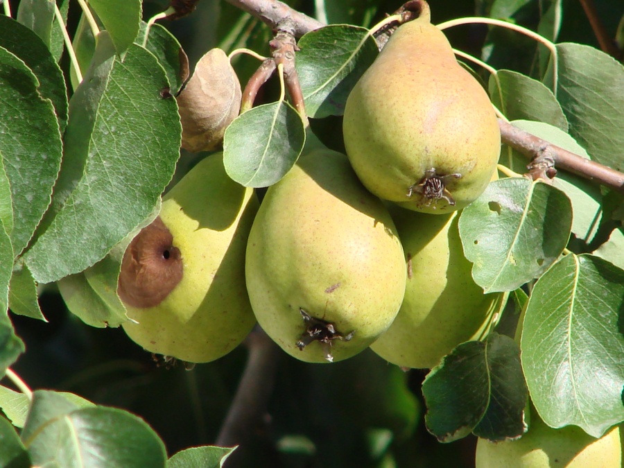 Часто гниют прямо на ветках плоды старых груш. Процесс гниения начинается с хвостика, когда плод висит на дереве. К моменту полного созревания груша будет иметь выгнившую минимум наполовину сердцевину.
