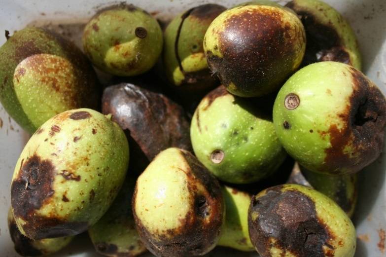 Если плоды чернеют, но остаются съедобными и не теряют вкусовых качеств, то причина — парша. Верный признак — это появление налета оливкового цвета на листве, который со временем становится бурым.