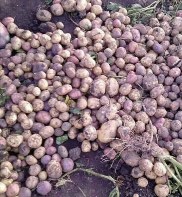 - Выкопанный картофель складывайте в одну кучку возле ямки. Так будет видно, насколько урожайным был куст — его качества будут передаваться и клубням.