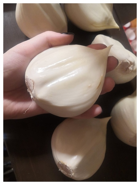 Что мы обычно используем в качестве посадочного материала? Правильно, зубки. Выкапываем головки, отбираем несколько на посадку, осенью делим их на зубки и снова высаживаем.