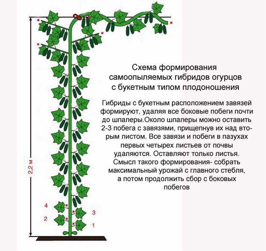 Удаление лишних побегов способствует более богатому урожаю огурцов
