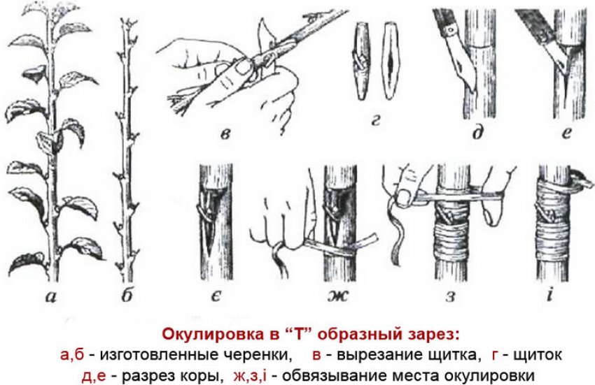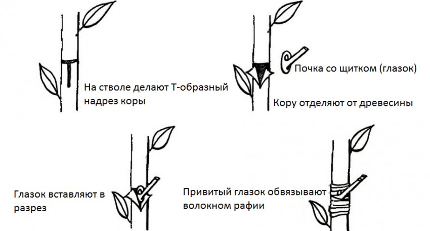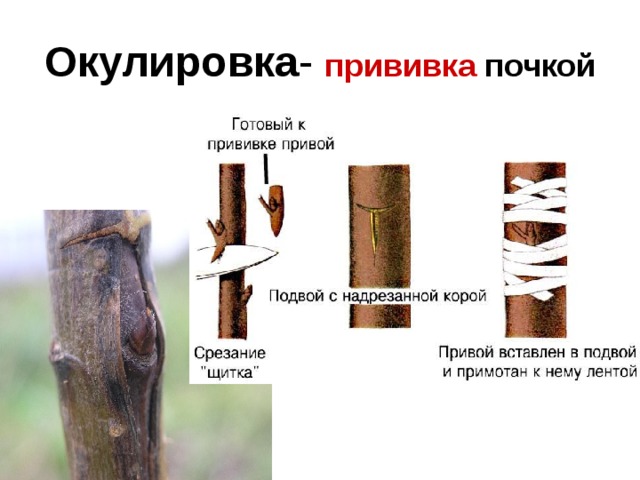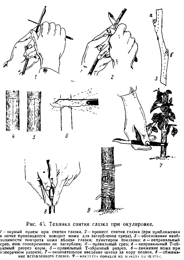 После этого отделяют от черенка почку с частью коры и древесины (щиток).