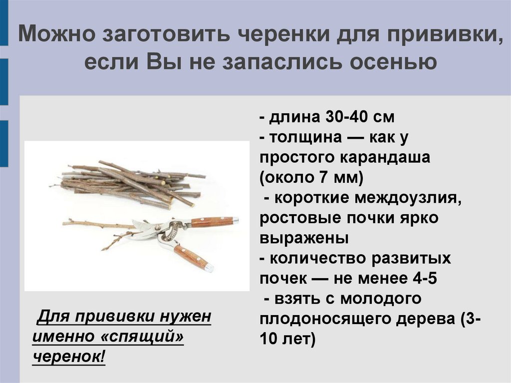 В качестве привоя плодовых деревьев используют черенки – однолетние по.