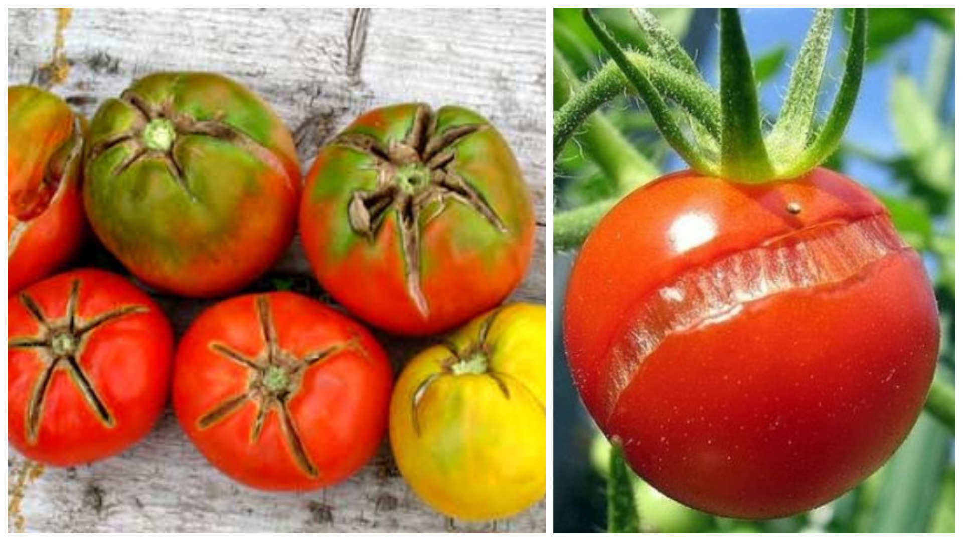 Неблагоприятные температурные условия выращивания помидоров часто приводят к появлению лопнувших плодов.