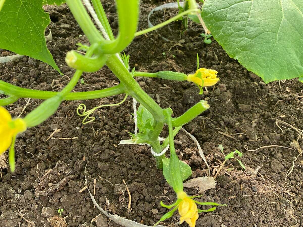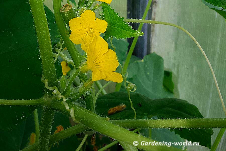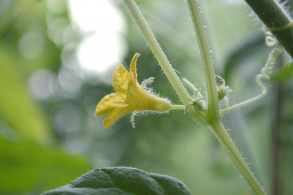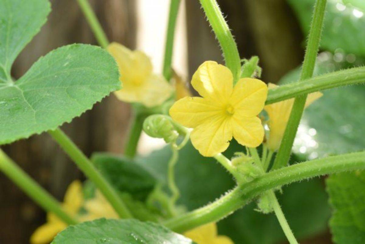 Огурец является однодомным растением, что означает наличие на одном растении как мужских, так и женских цветков. Женские цветки имеют завязь под цветком.На самом деле это мини-огурец, который разовьется после опыления. Мужские цветки появляются первыми и находятся на концах длинных стеблей. Цветки раскрываются только в течение одного дня.