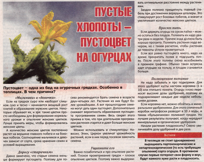 Пустоцвет возникает при выращивании раздельнополых сортов огурца, которые образуют как мужские (пустоцветы), так и женские цветки. Причин такого явления достаточно много.
