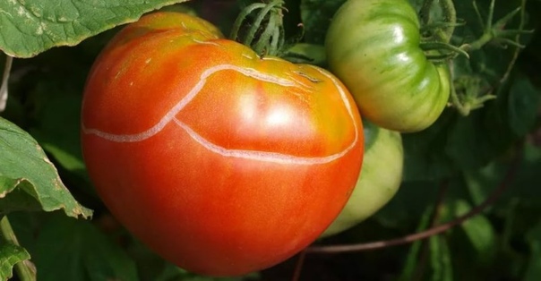 Помидоры трескаются и раскалываются из-за нерегулярного полива. Если после долгого засушливого периода выпадет хороший дождь, внутренняя часть плода начнет расти слишком быстро, чтобы кожица помидора не успела за ним. Внутри так много сока, что кожица треснет. Вы также можете увидеть зажившую трещину, похожую на колющую.