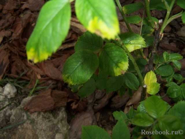 Известно, что приобретать жёлтый оттенок листья розы могут при поражениях паразитами.