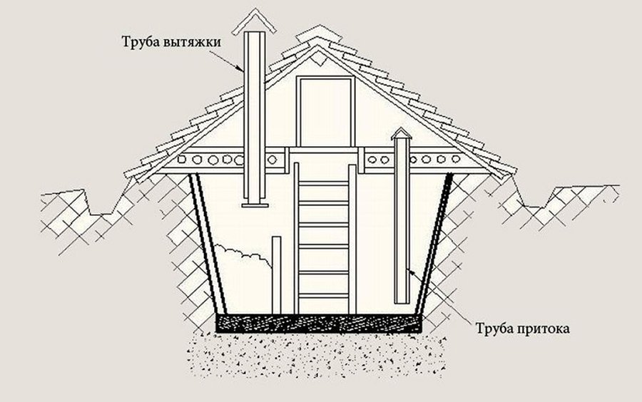 Если вы обнаружили некорректную работу вашей вентиляции, ее можно исправить путем установления дополнительной втяжки, вмонтированной в вентиляционные трубы. Для этого в погребе инсталлируют две трубы, она из которой является вытяжной, а другая приточной. Трубы располагают в параллельных углах помещения на разной высоте. В результате дополнительной вытяжки внутри погреба появляется тяга и создается сквозной поток воздуха.