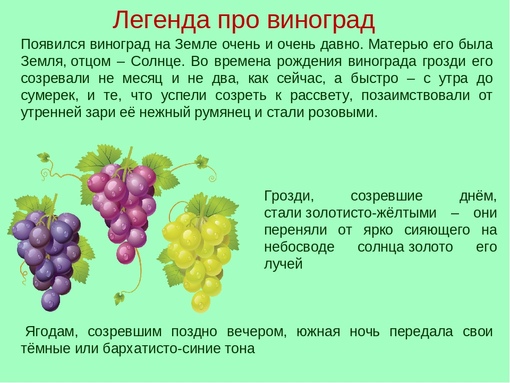 Спеют на солнцеОдин мой знакомый угощает всех виноградом Русский ранний. И хотя называется ранним – у него этот сорт созревает вплоть до заморозков. Хитрость в том, что половина кустов в тени. Если не проредить кроны деревьев и оставить виноград в тени – он или вообще не станет плодоносить, или очень медленно будет спеть. Степень освещения можно распределить так, чтобы лакомиться одним сортом все лето.