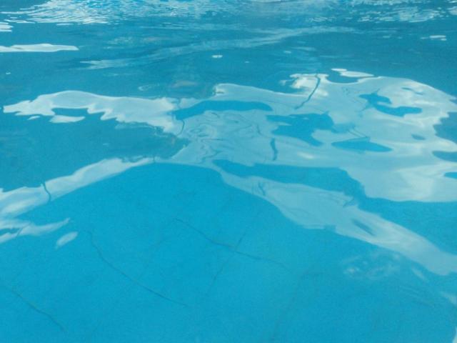 Вода в бассейне окрашивается в синий цвет химическими веществами, которые используются для поддержания ее здоровья.