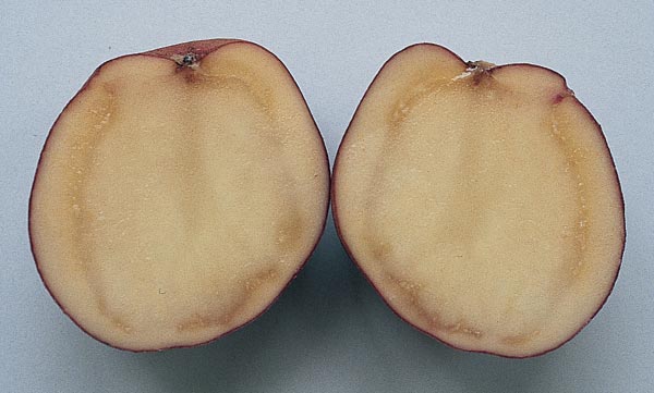 Восприимчивы яблоки Empire и McIntosh и, предположительно, Fuji когда они хранятся слишком долго при низких температурах. Это выглядит очень похоже на потемнение, вызванное выбросами CO2 (показано выше), влияющее на сердцевина и плоть. Ключевое отличие в том, что нет четкой границы между пораженной плотью и неповрежденными участками; они смешиваются вместе. Университет штата Мэн говорит, что это происходит чаще, когда яблоки собирают поздно (для сорта) и хранения используется соединение 1-MCP.