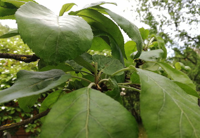 - Теплая осень и избыток влаги в почве. Листья яблоне в таком случае нужны, чтобы испарить эту самую влагу.