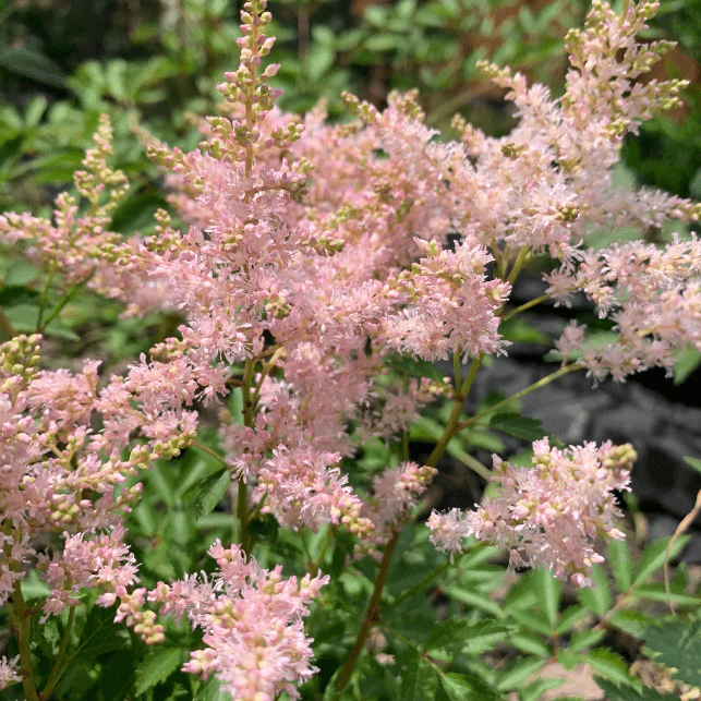 Астильбы идеально подходят для выращивания на затененных уступах и хорошо сочетаются с другими теневыносливыми растениями. Рядом можно посадить: