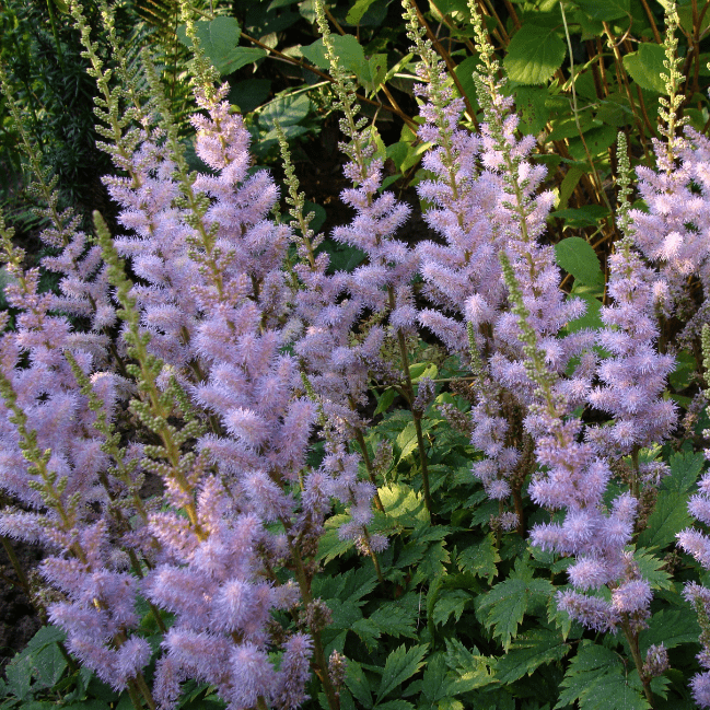 Астильбы любят тень – лучше сажать их под деревьями. Эти растения популярны для посадки на рабатках, создания цветочных групп и как срезанные цветы.
