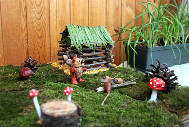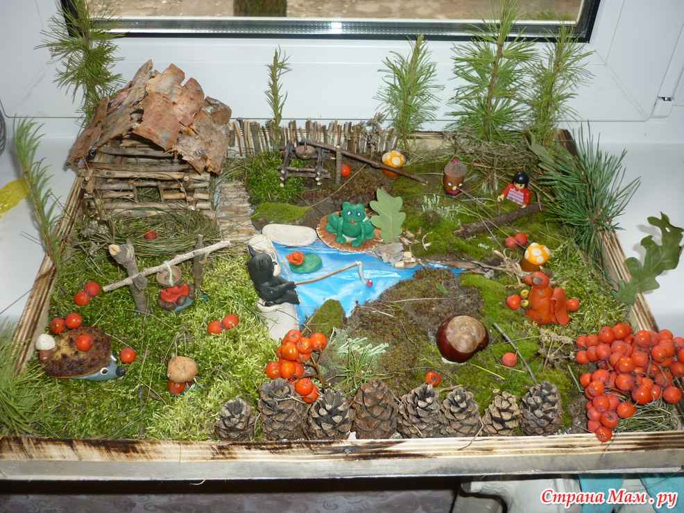 Придётся лишь постараться собрать его и включить богатую фантазию, применяя всё, что лежит под ногами: ветки, сухие листья, шишки, жёлуди.