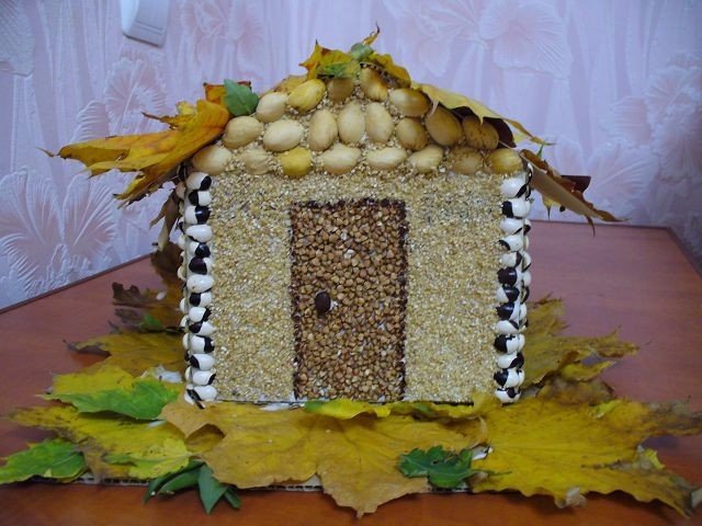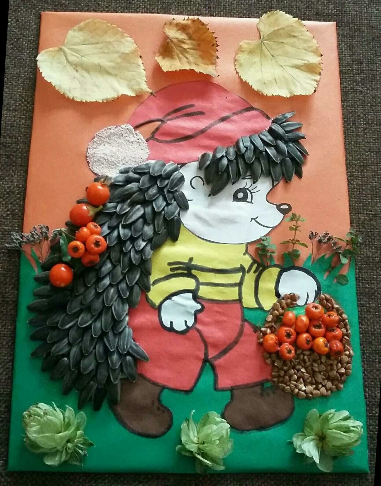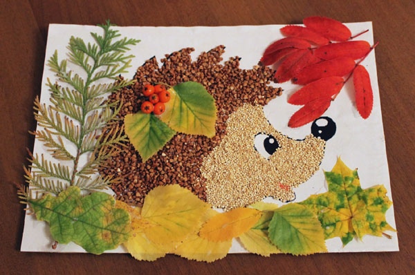 Среди бесчисленного множества классных идей, некоторые из которых очень впечатляли, я выбрала такого вот осеннего ёжика из крупы.