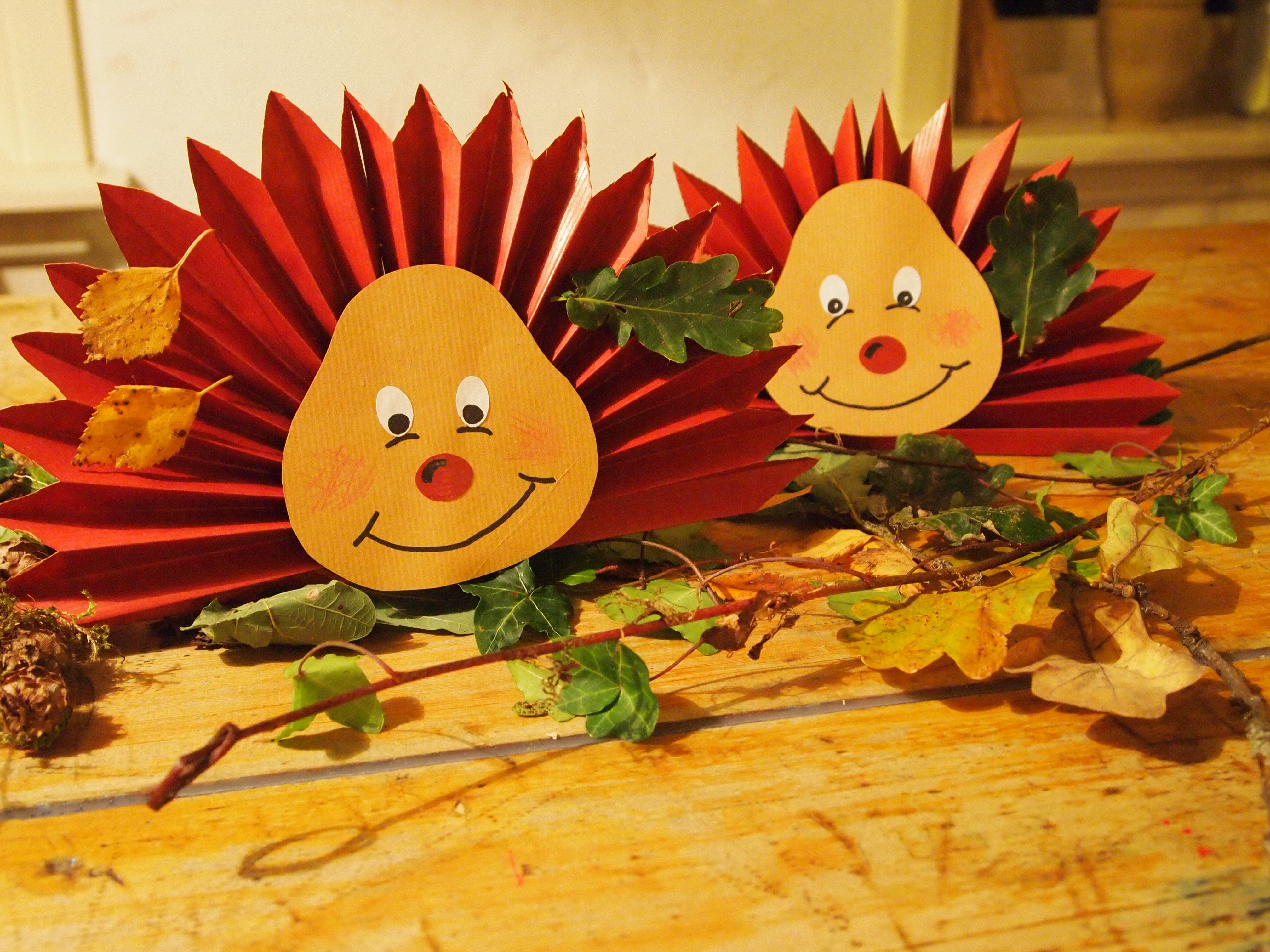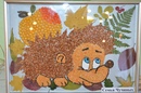 Листочки посимпатичнее мы с Артуром вместе отбирали после сада по всем дворам. Особенной удачей оказалось заполучить листочек туи и ягоды рябины. Украшать нашего ёжика мы пригласили и папу.