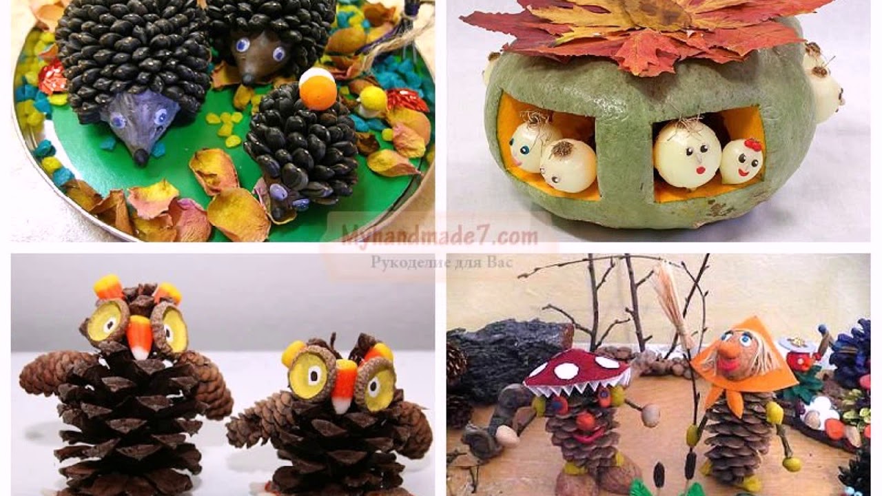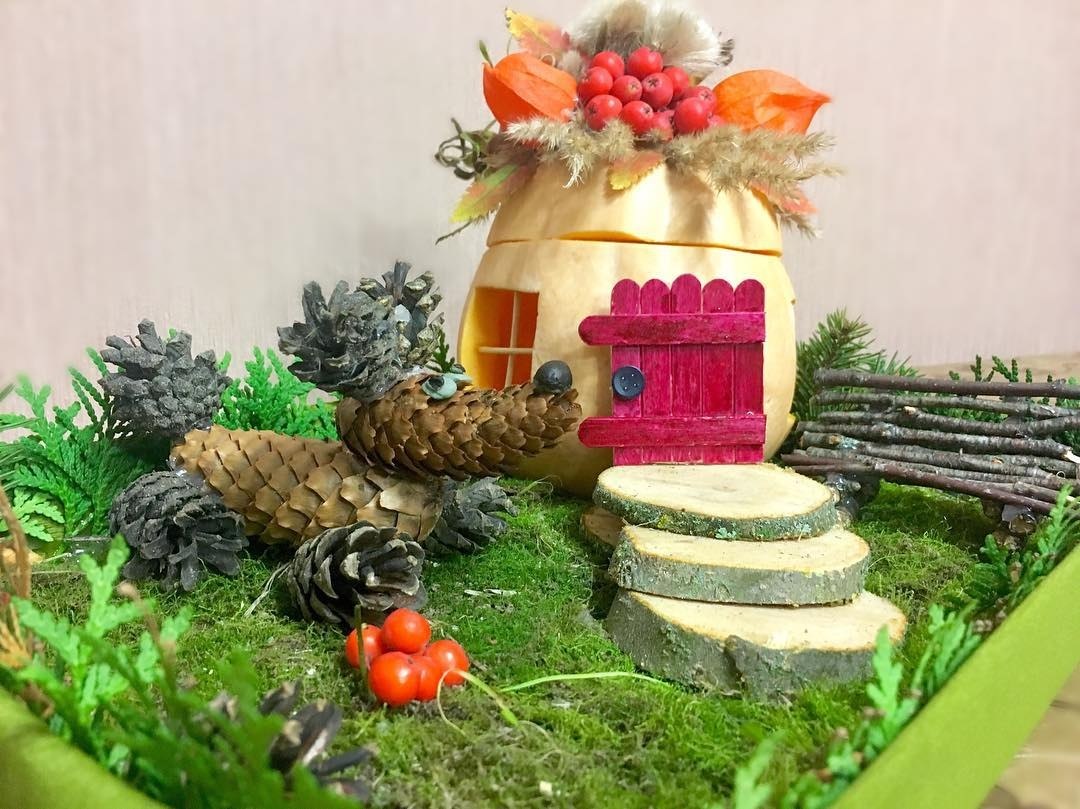 Природные поделки в садик предпочтительнее создавать в осеннее время года, так как сама природа предоставляет огромный выбор материалов для детского творчества.