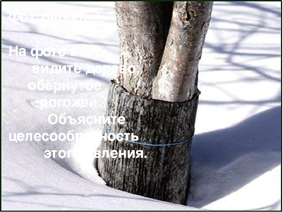 Однако зимы не всегда бывают снежными. В этом случае штамбы деревьев необходимо укутывать различными дышащими материалами. Для этих целей можно использовать газеты, хлопчатобумажную плотную ткань, мешковину и тому подобное.