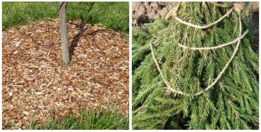 - Для защиты корневой системы можно использовать перегной, уложив его в приствольную полосу слоем в 10 см и набросав сверху еловых лап – это оптимальный вариант.