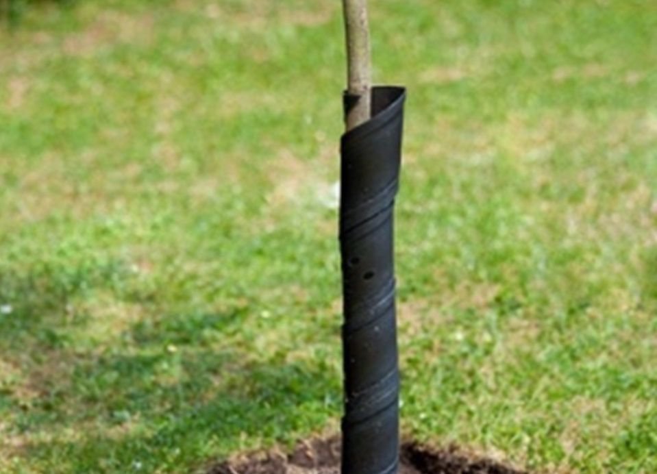 - Для защиты от мышей, после того как утеплили приствольный круг нужно закрепить на стволе, желательно до первых скелетных сучьев, пластиковую сетку черного цвета.