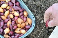 Разместите луковицы на расстоянии от 4 до 6 дюймов друг от друга рядами с промежутками в 8-12 дюймов друг от друга. Имейте в виду, что чем меньше расстояние между рядами, тем мельче будет луковица.