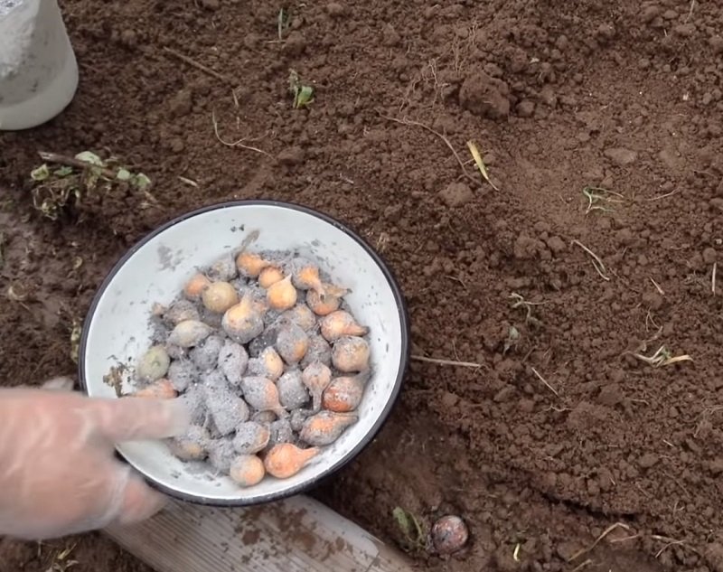 Посадка подготовленных луковиц.