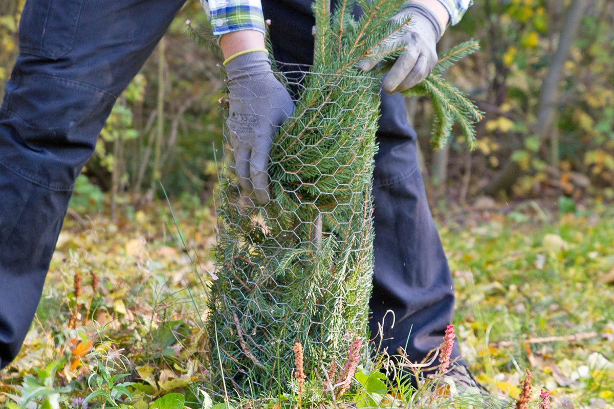 Обертка на картинке выше выглядит глупо — заворачивается только низ растений. Но это хороший способ уменьшить урон оленей, если оболочка достигает уровня оленя.