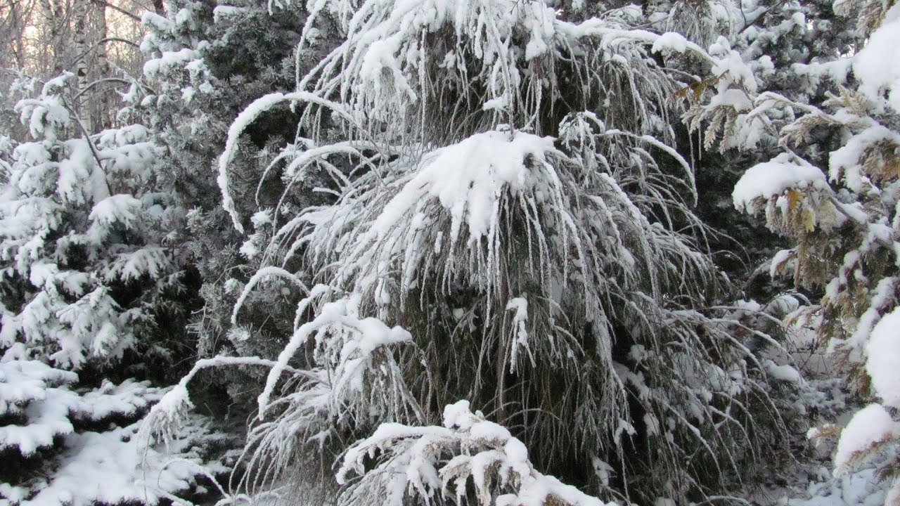 Хвойные деревья собирают на своих ветвях большое количество снега.